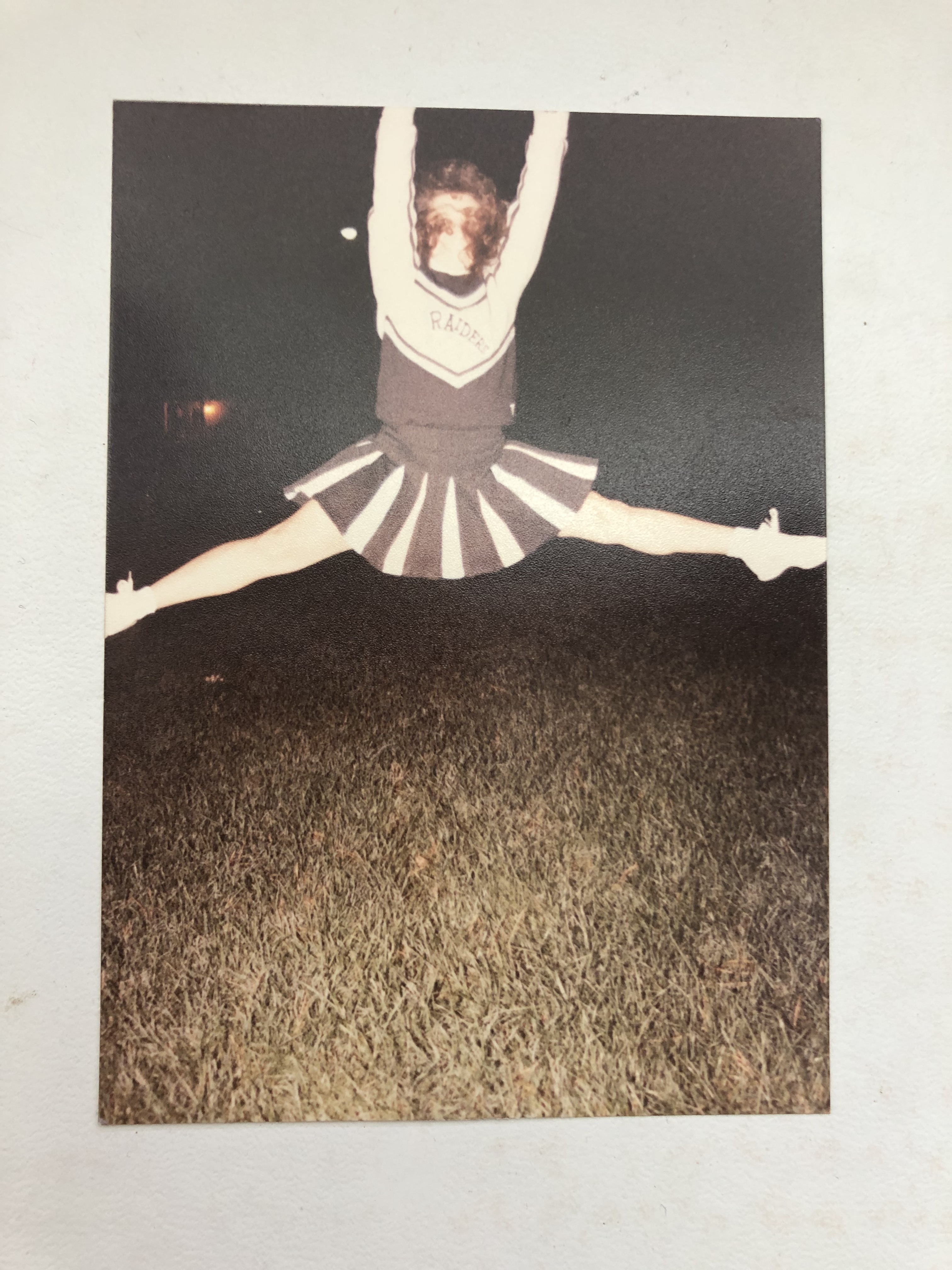 Doing a grab jump, October 1990, as a cheerleader for Toms River High School East. Photo credit: W. T. Wagner